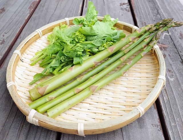 菜の花、せり、ふき、たけのこ、新玉ねぎ、アスパラガスなどを旬のうちに取り入れるのはおすすめです。